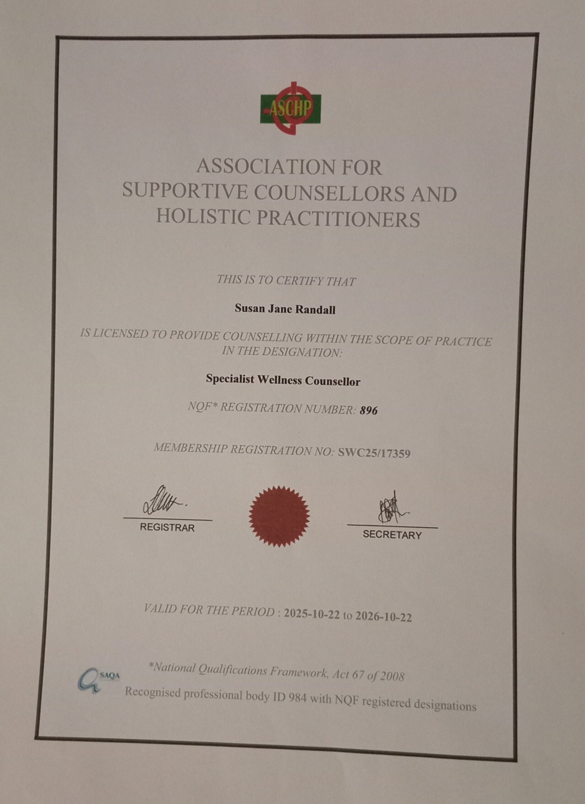 I am not a registered healthcare practitioner, which means medical aids do not cover my fees. However, I am registered with the ASCHP as a specialist wellness counsellor, which means you may be able to claim for my fees in your tax returns as a health-related expense not covered by medical aids.