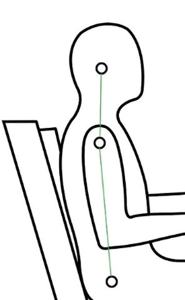 A couple of years later, a chiropractic student studied the RidgeBack in the research part of her degree. I supplied cushions, and she later shared her results with me. The findings showed that the RidgeBack made a genuine difference to the position of the spine while sitting in a chair. The alignment between the ear, shoulder, and hip was better with the cushion than without it. How exciting! The physical benefits I experienced from driving with the cushion were now academically substantiated. The diagrams below are based on the real-life photos that were collected during her study.